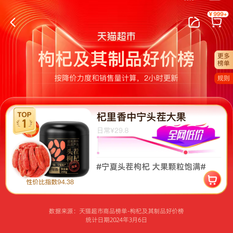 宁夏枸杞独立小包装 头茬大果中宁特级果免洗无硫熏同仁堂官方正品