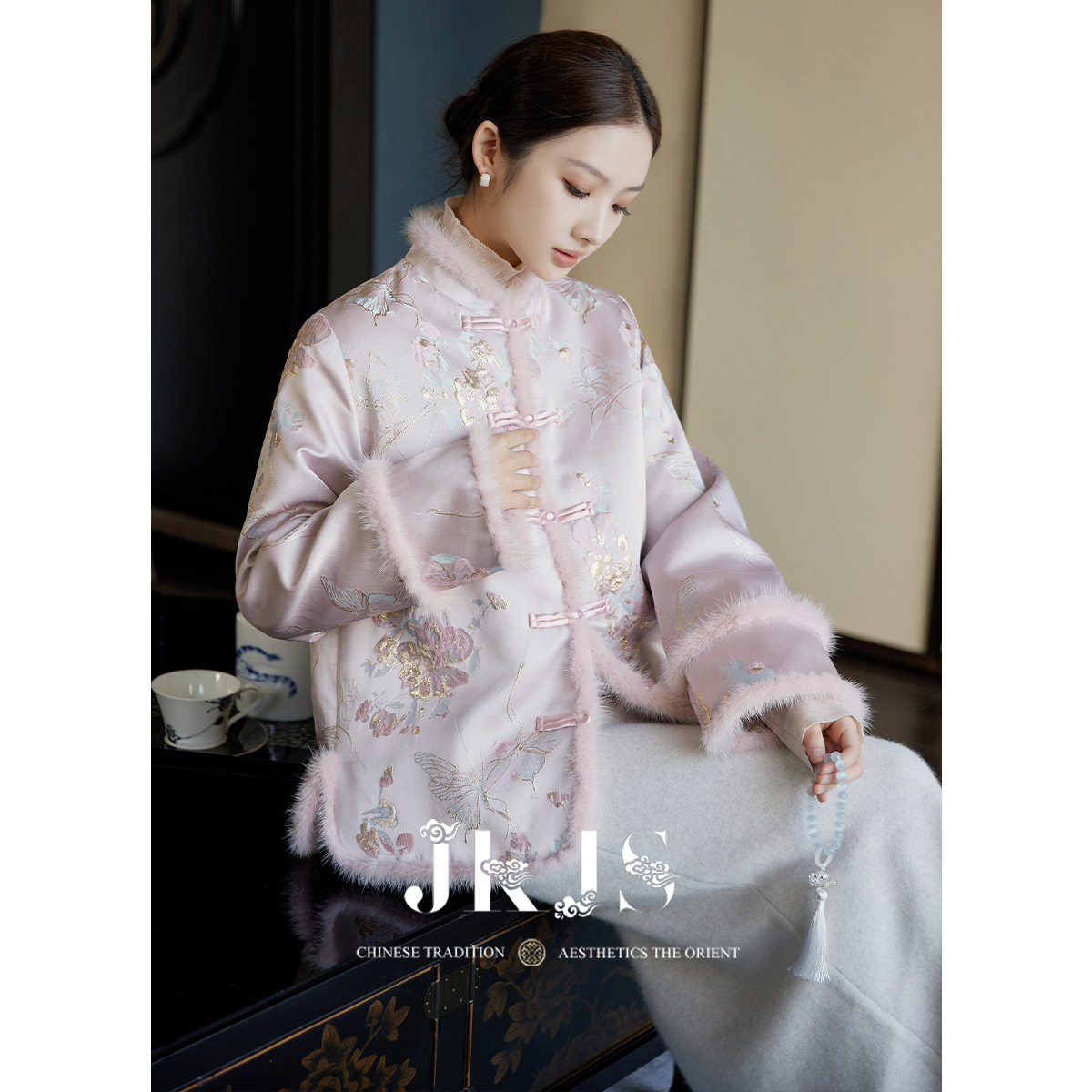 新中式 肌理提花 厚外套夹棉秋冬2025棉衣刺绣上衣 漫桃集 JKJS