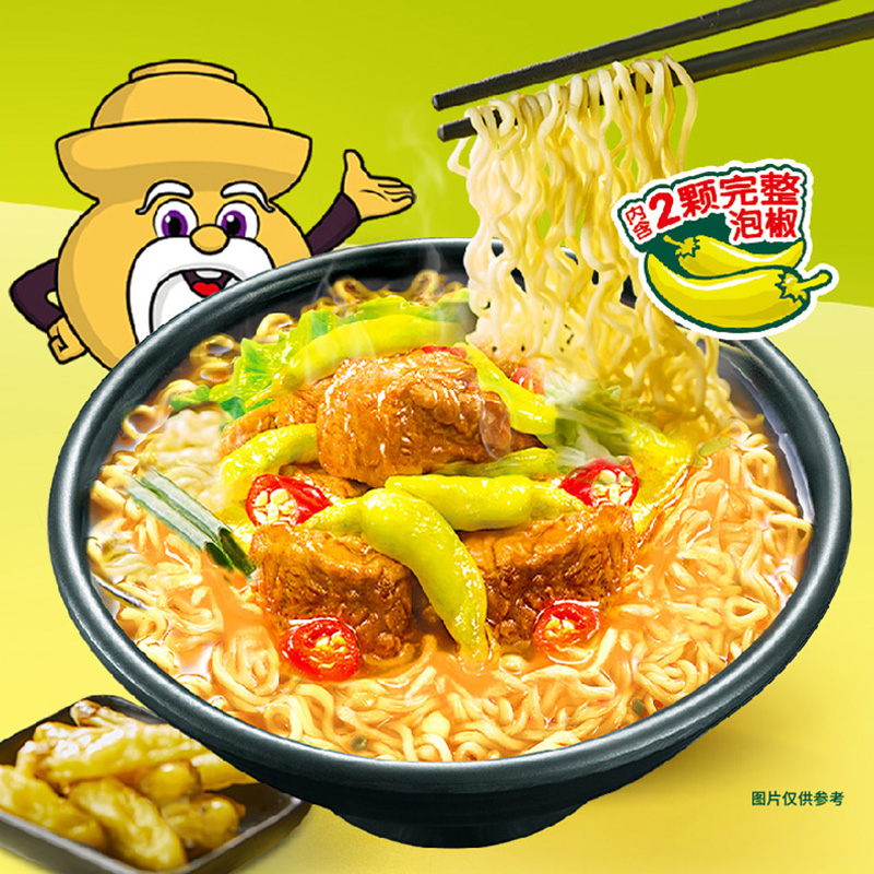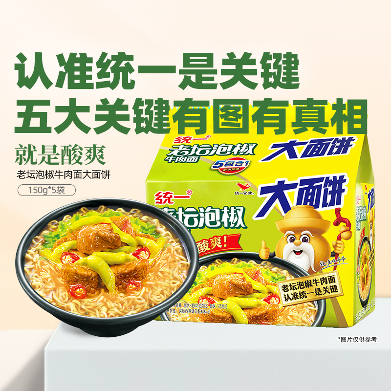 过瘾 辣 统一100方便面老坛泡椒牛肉面大面饼135g 5包泡面