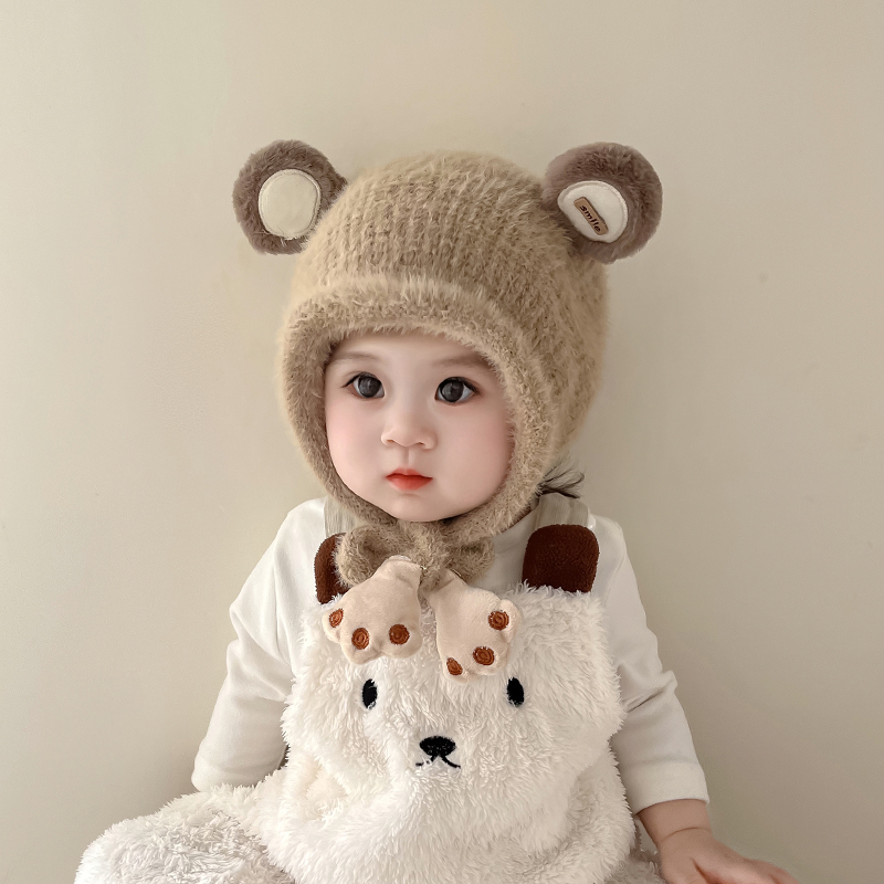 KK树宝宝帽子秋冬季 儿童围脖一体冬天男童女孩婴儿套头帽毛线护耳