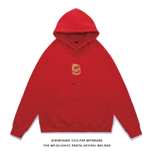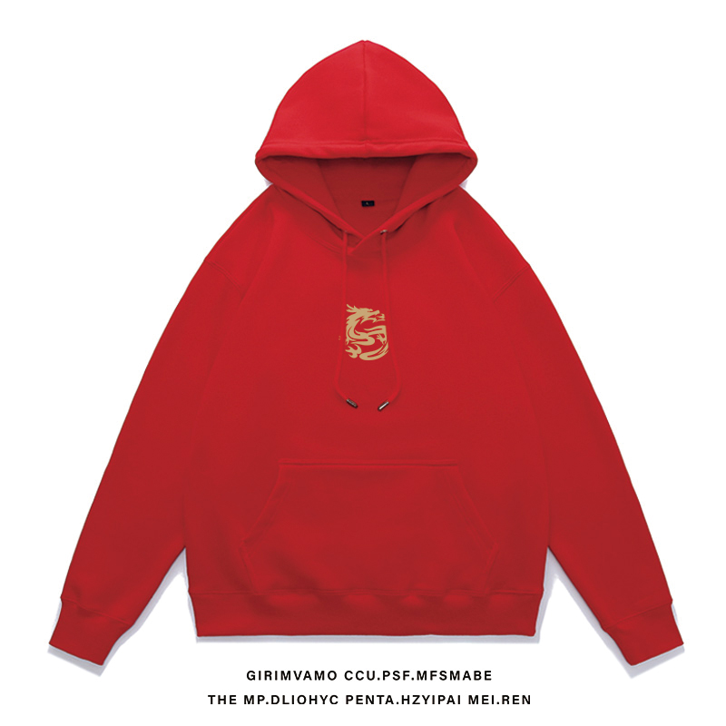 潮牌男装 衣服酒红色加绒卫衣男秋冬款 外套 加厚本命年蛇年男士 秋季