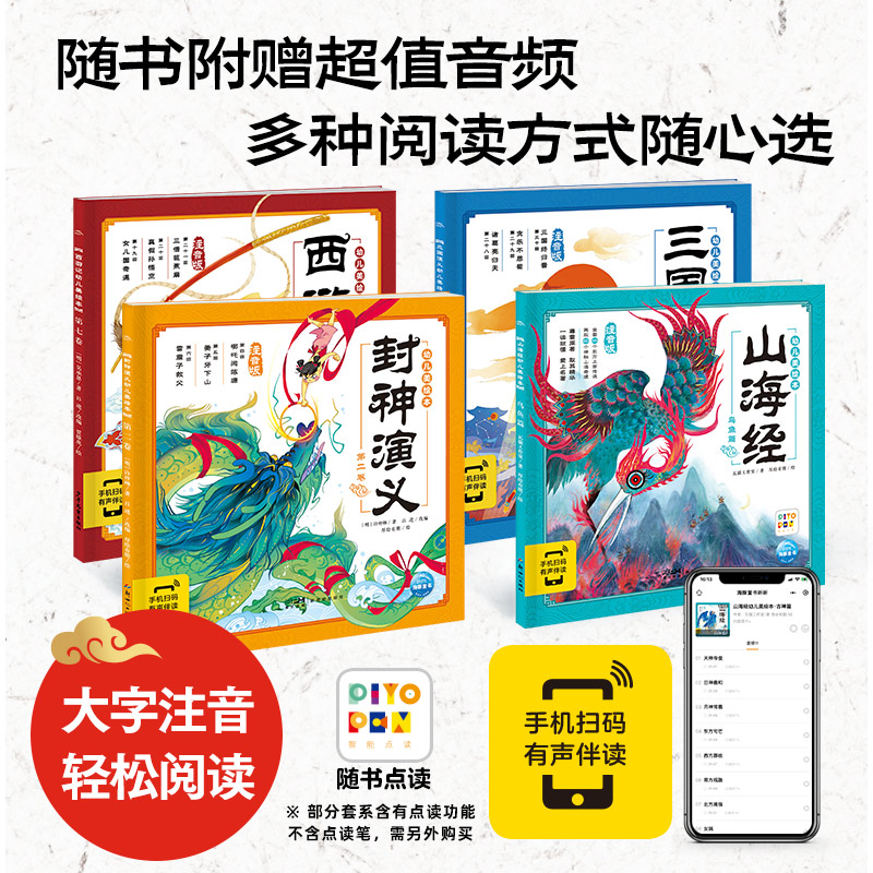 西游记山海经幼儿美绘本3–6岁封神三国演义儿童连环画册经典 大字注音 四大名著彩绘中国古代神话故事书一年级课外阅读 点读版