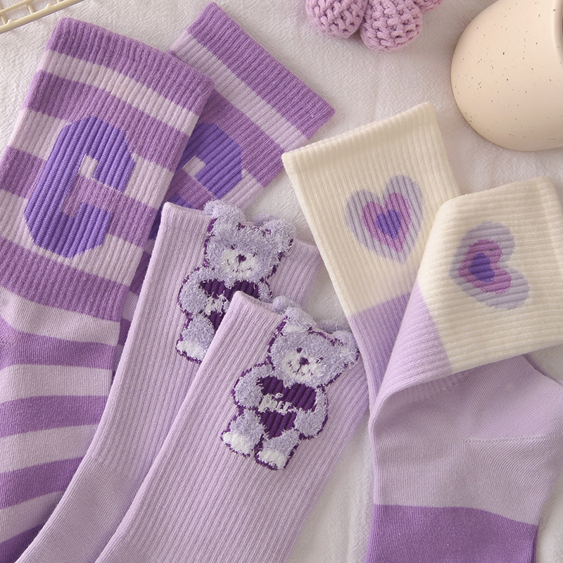 秋冬女袜2025新款 中筒袜女士袜子 粉色可爱少女卡通棉袜搭配小皮鞋
