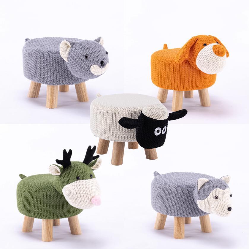 儿童卡通针织动物造型凳实木坐凳创意家用懒人换鞋 矮凳小朋友座椅