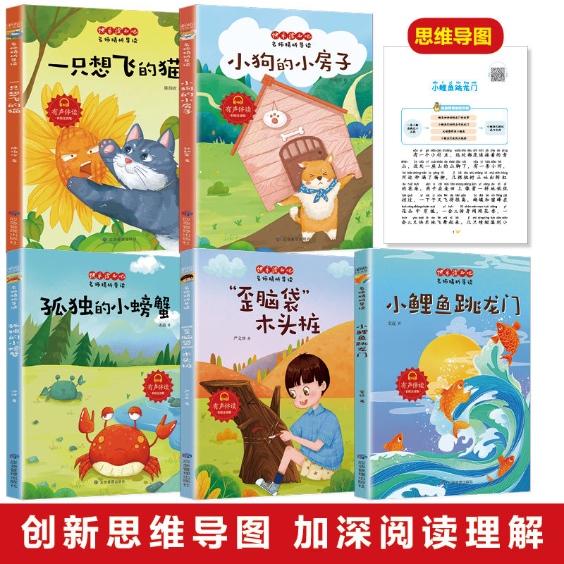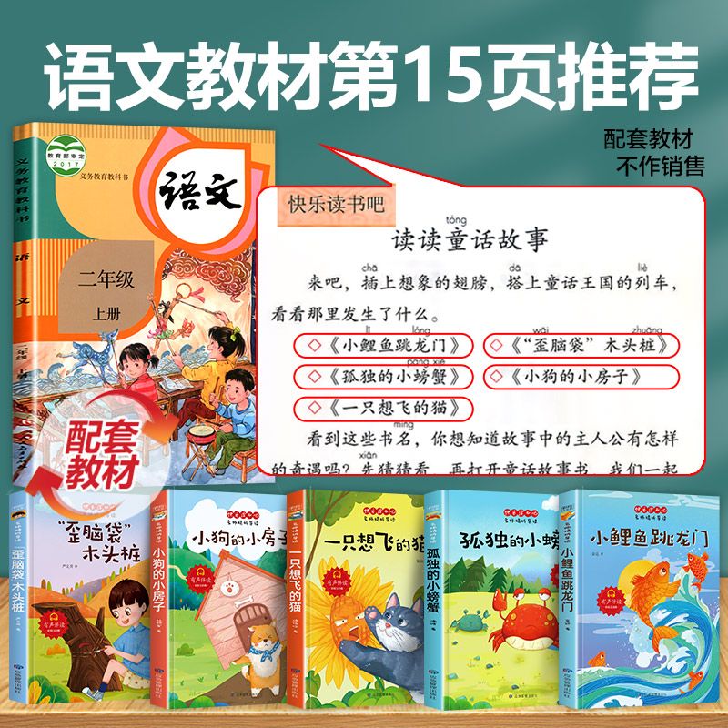课外书全套5册2年级正版 人教版 上注音版 二年级上册快乐读书吧小鲤鱼跳龙门 猫 小房子 一只想飞 快乐读书吧二年级上册 小狗