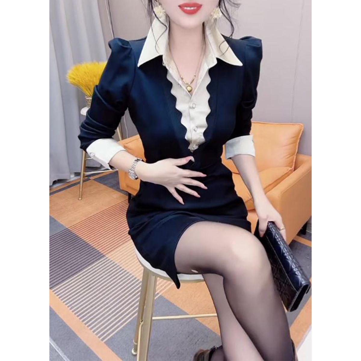 法式 洋气显瘦设计感衬衫 长袖 新款 领休闲裙子 连衣裙女2025秋季 时尚