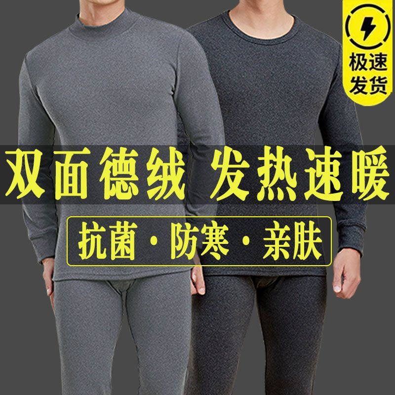 抗菌保暖内衣冬全棉毛衫 健丹鸟秋衣秋裤 纯棉薄款 男款 内穿打底 套装