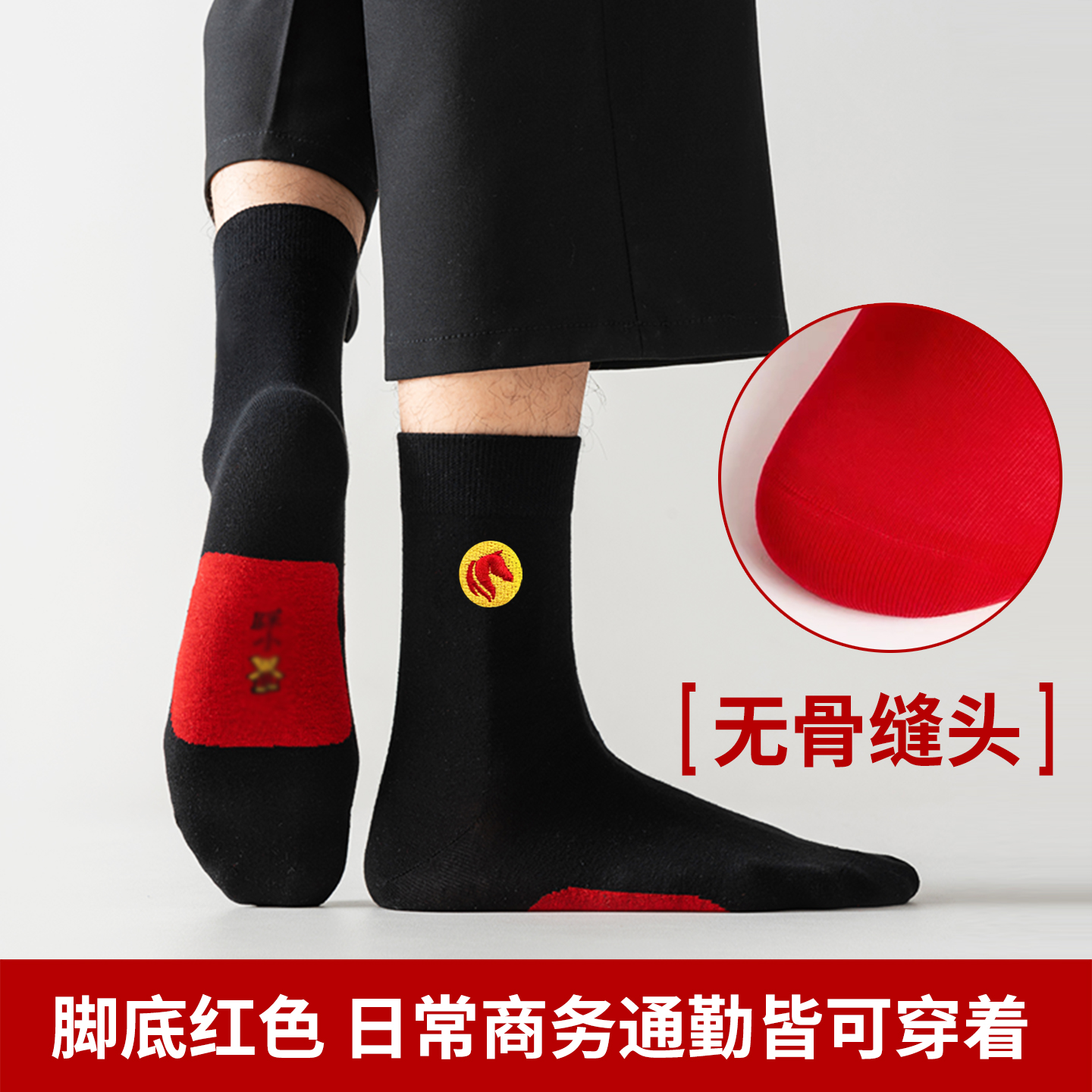 棉伙棉伴海藻袜舒适抗菌防臭男女商务运动纯色裸感中筒袜