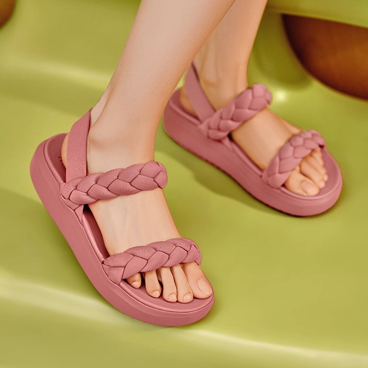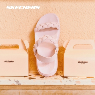 轻便沙滩鞋 斯凯奇女子厚底增高透气网布运动鞋 舒适一字带休闲凉鞋