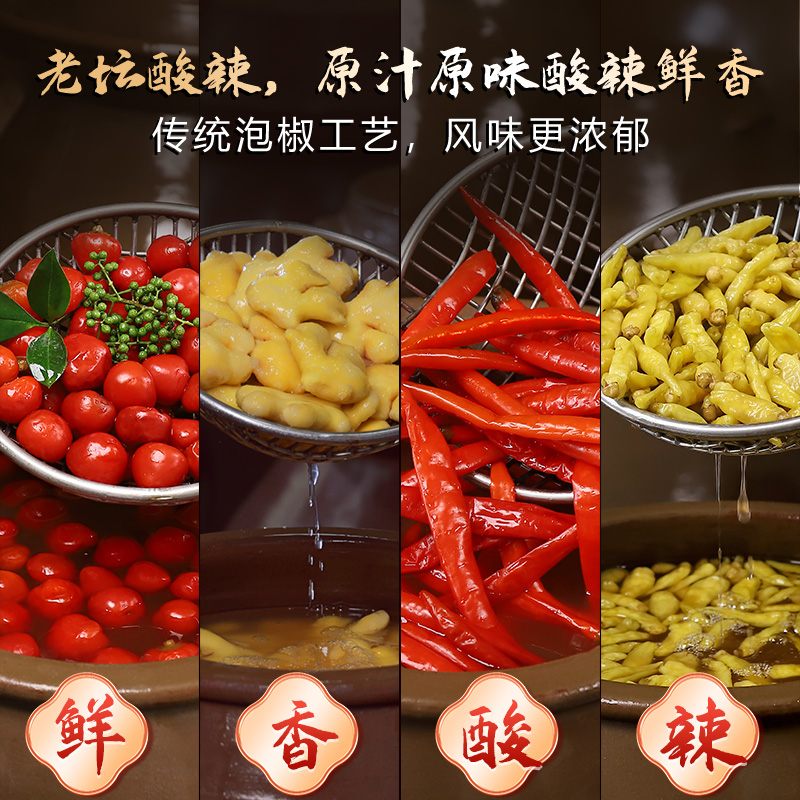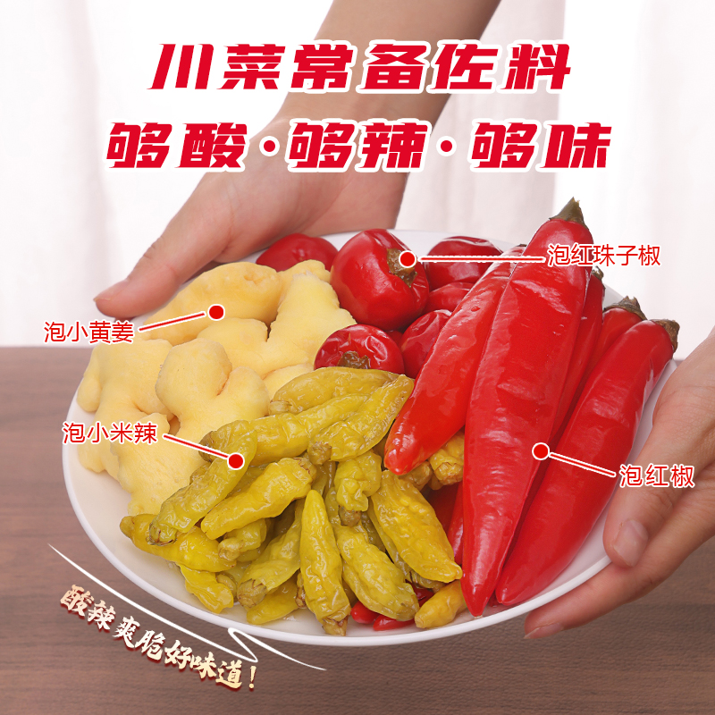 老坛子泡菜辣三宝四川泡菜老母水二荆条泡姜泡椒珠子椒组合装 300g