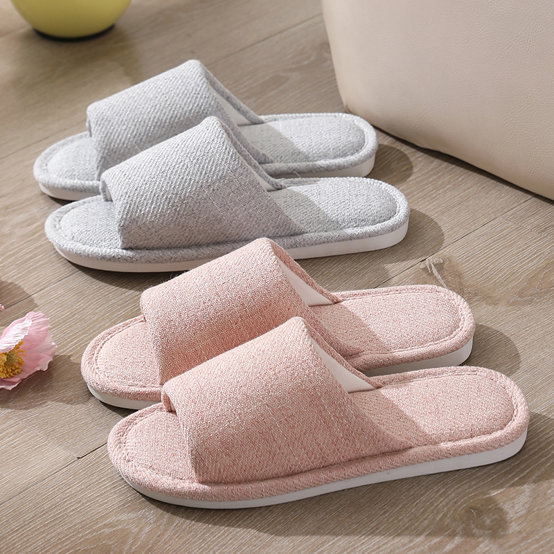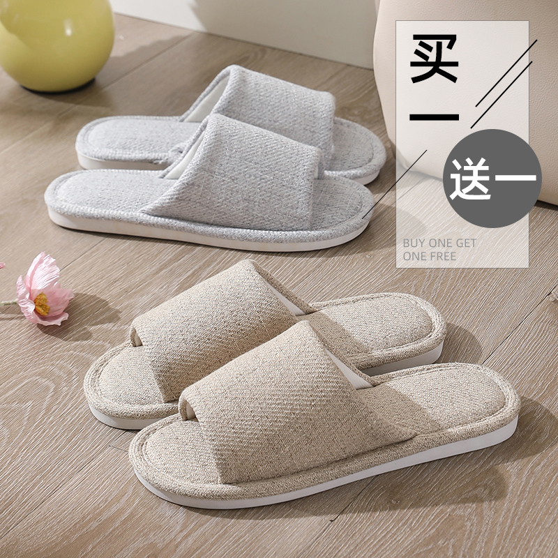 男 居家静音吸汗防滑民宿酒店拖鞋 买一送一日系简约亚麻拖鞋 女四季