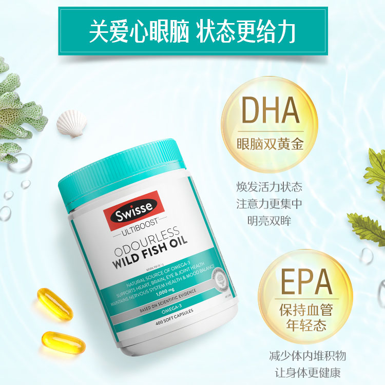 Swisse斯维诗高浓度深海鱼油omega3软胶囊DHA 4瓶 EPA400粒