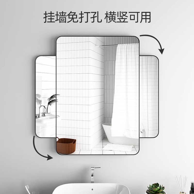 定做浴室镜子贴墙免打孔玻璃卫生间化妆镜自粘挂墙切割尺寸定制
