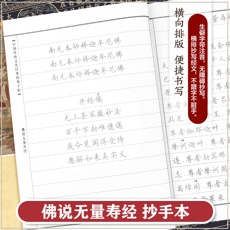 佛说无量寿经正版 佛说无量寿经手抄经楷书版 手抄本佛经抄经本 临摹本 抄写本抄经卷静心修心佛学文化硬笔书法 中国传统文化经典