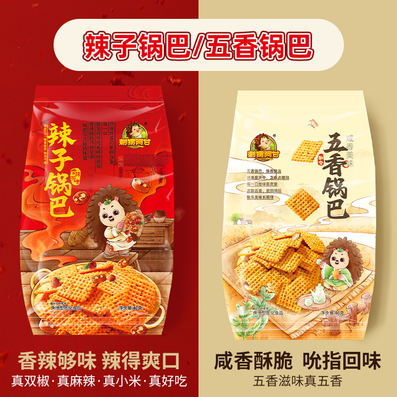 刺猬阿甘辣子 五香锅巴40g小米真双椒酥脆解馋追剧休闲小零食小吃