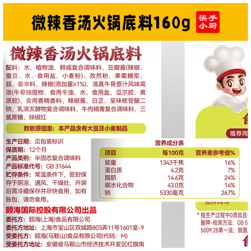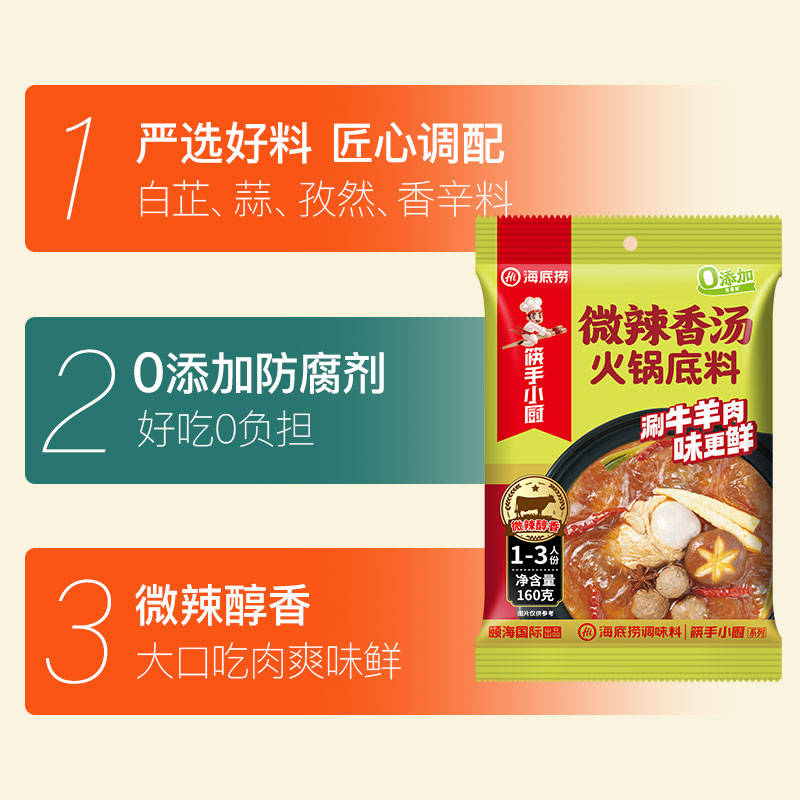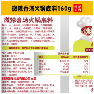 筷手小厨海底捞微辣香汤火锅底料160g涮牛羊肉麻辣烫小包汤料调料