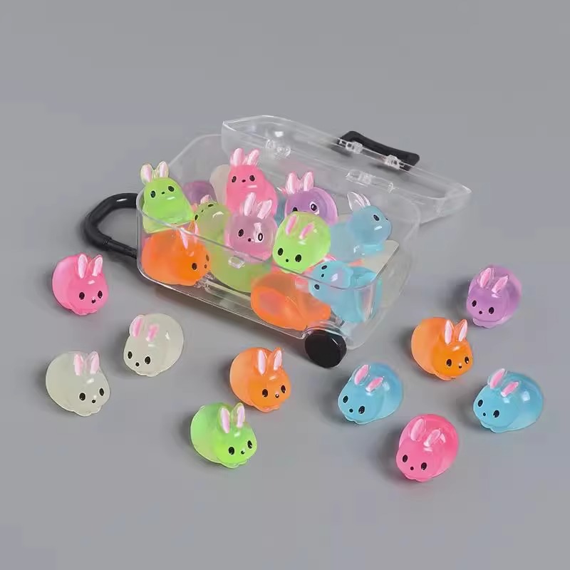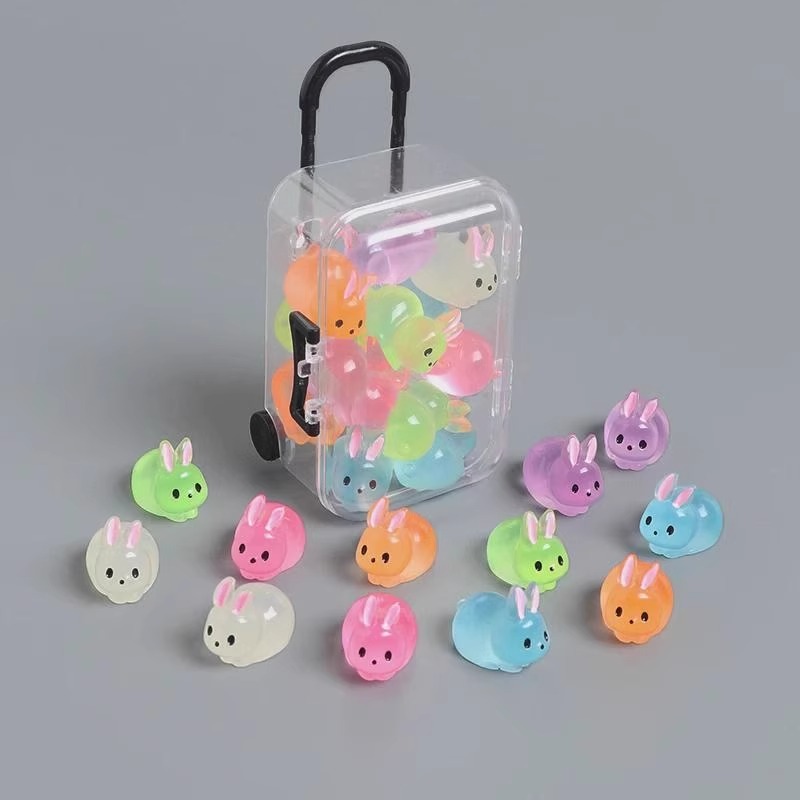 夜光可爱小兔公仔摆件行李箱模型创意儿童过家家玩具桌面装 饰配件