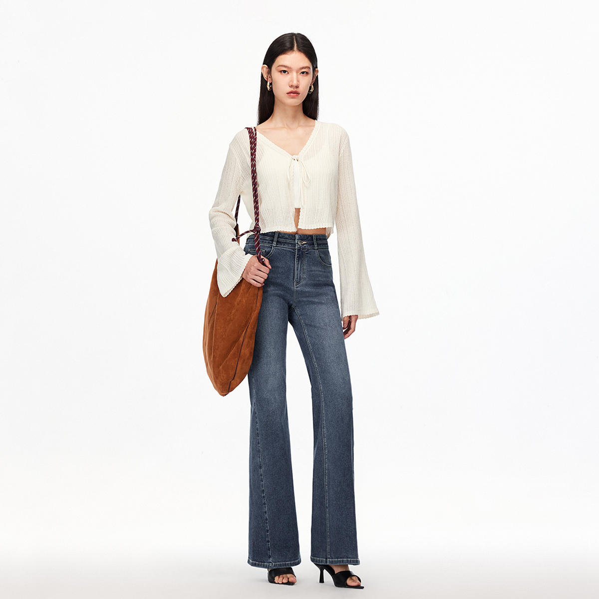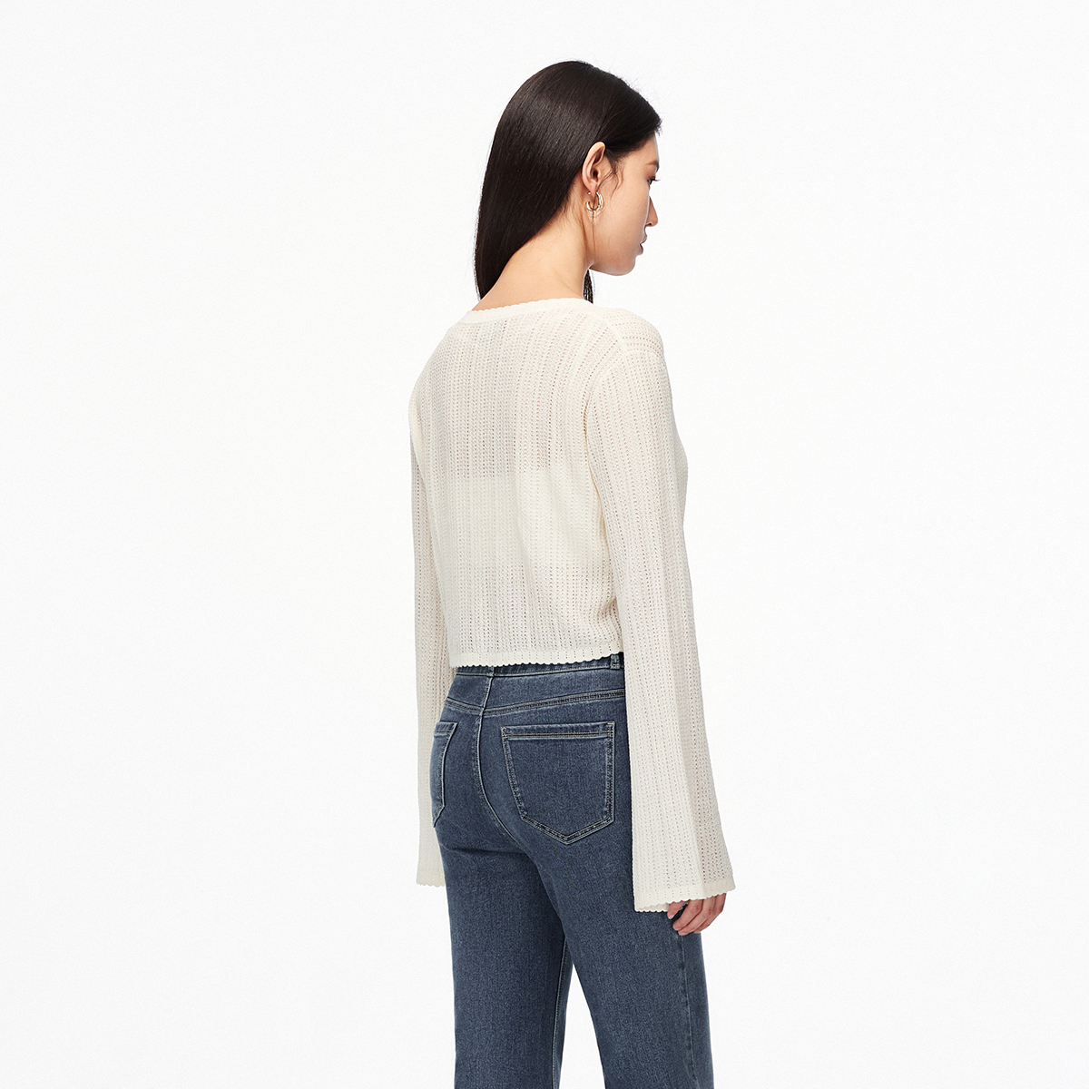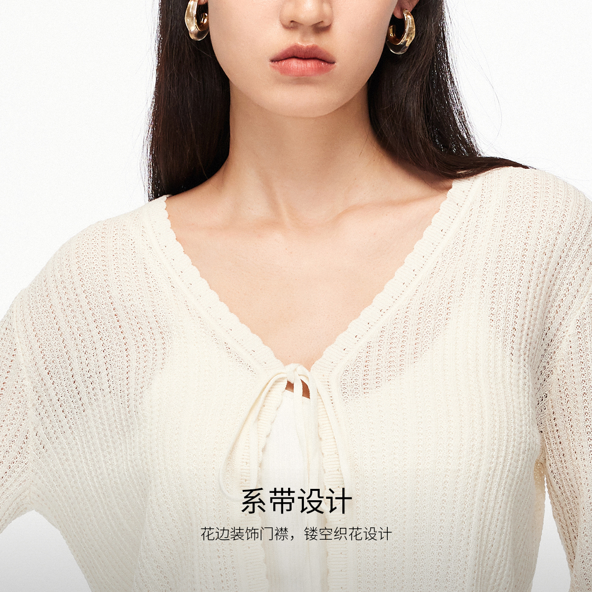 新款 2025秋季 含莱赛尔亚麻镂空织花上衣325313003 Moda针织衫 Vero