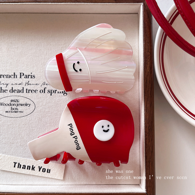 韩国东大门饰品设计感羽毛球乒乓球卡通抓夹中号盘发新款 气质头饰