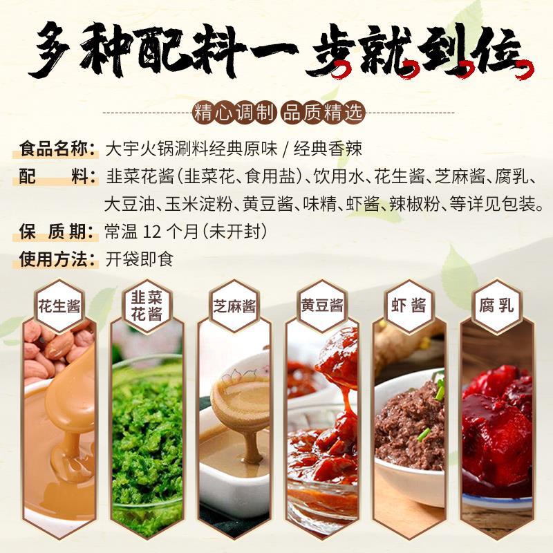 天津大宇涮料王火锅蘸料铜锅涮羊肉调料花生芝麻酱小料小包装 酱料