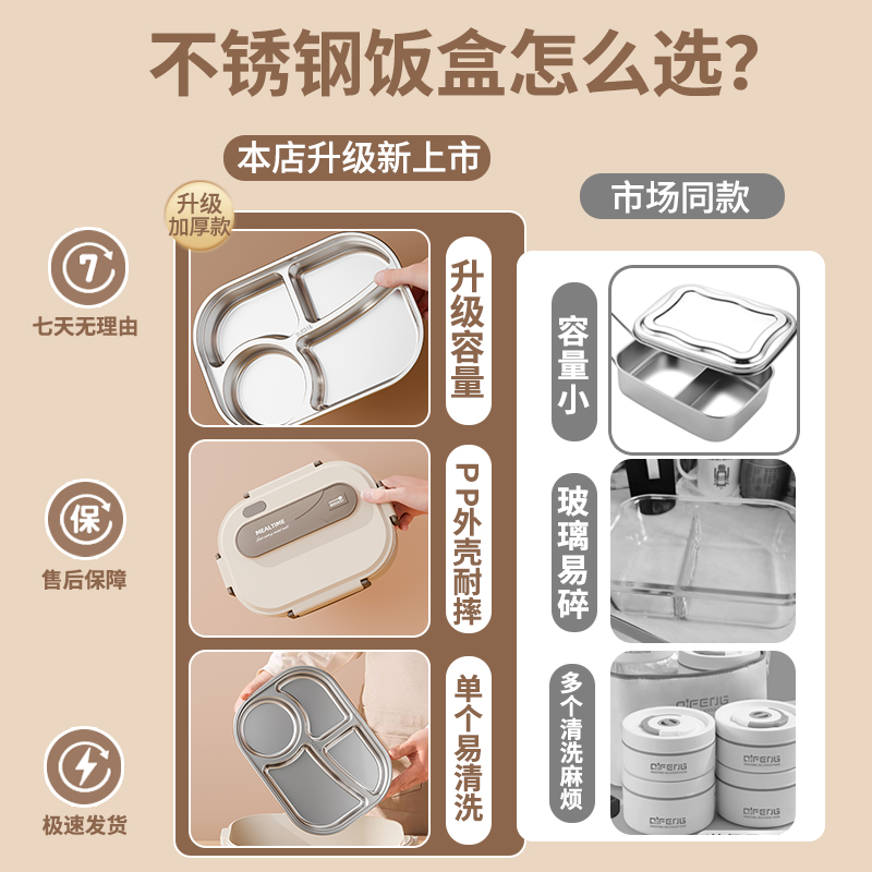 316不锈钢保温饭盒上班族可微波炉加热餐盒学生小学生专用便当盒