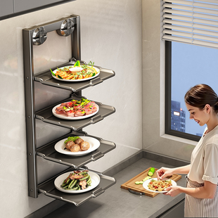 日本备菜置物架厨房吸盘折叠放菜盘分层台面免打孔壁挂墙上收纳架