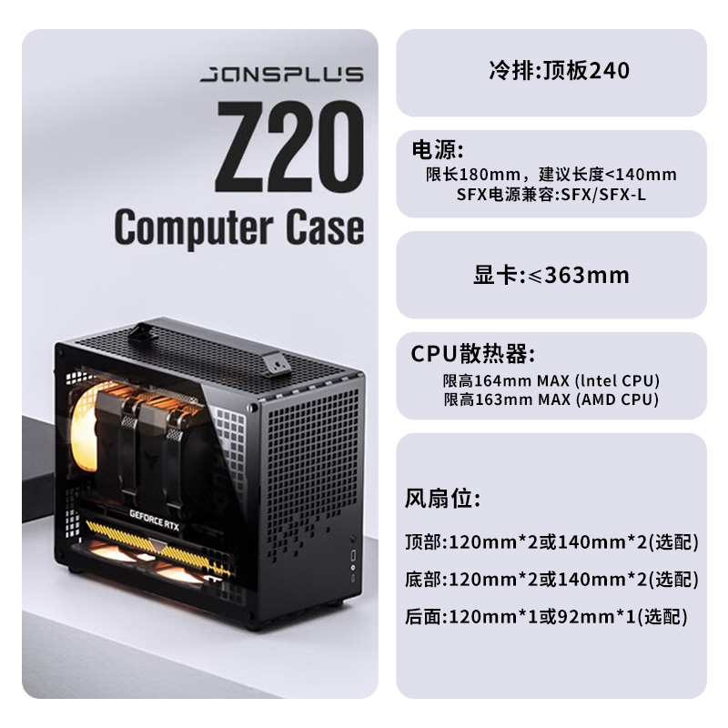 乔思伯MATX机箱Z20手提式 机箱便携ITX迷你机箱玻璃侧透mini小机箱