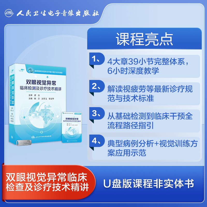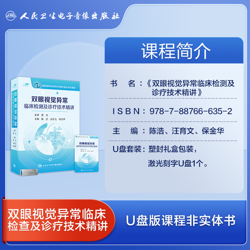 双眼视觉异常临床检测及诊疗技术精讲陈浩汪育文保金华基本检测专家共识临床处理医学书籍课程人民卫生电子音像出版 社