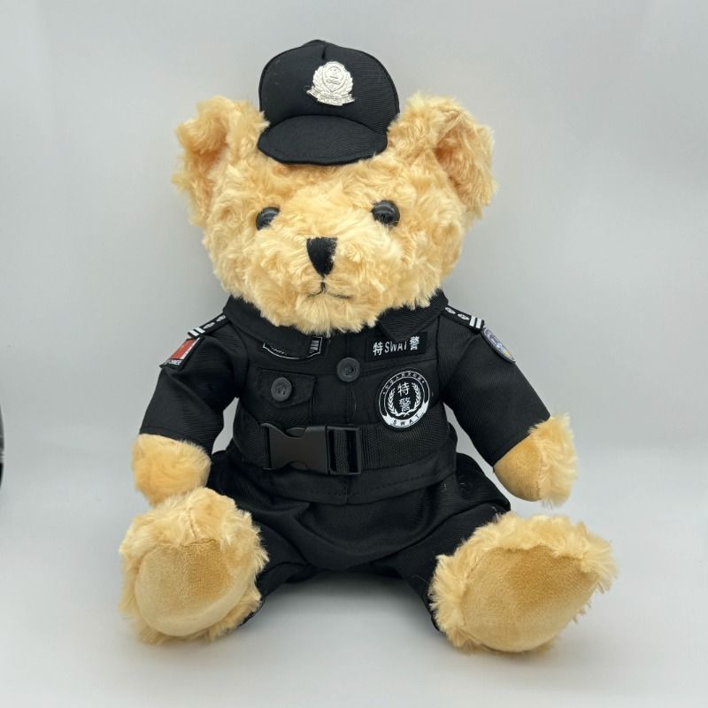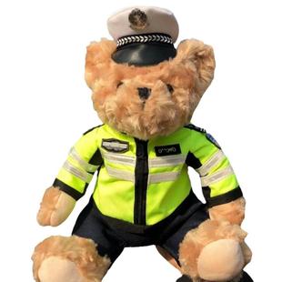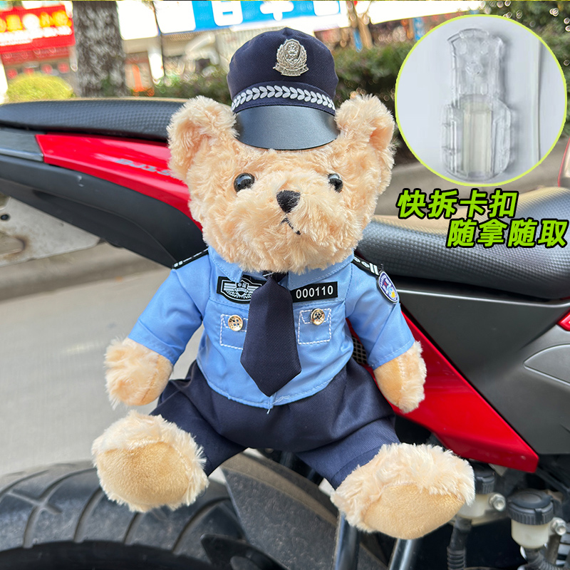 交警小熊公仔摩托车电瓶电动车装 饰品小配件 饰摆件警察车载玩偶装