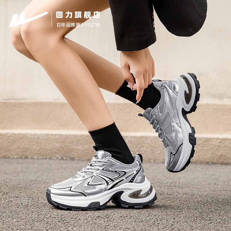 贝果鞋 骆驼慢跑鞋 透气银灰色复古休闲鞋 透气老爹鞋 子 漫游女运动鞋