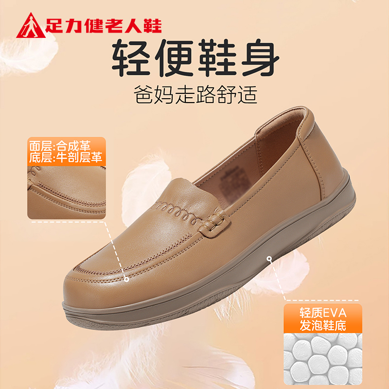 皮面女鞋 中老年妈妈休闲运动健步秋季 官方旗舰店正品 足力健老人鞋