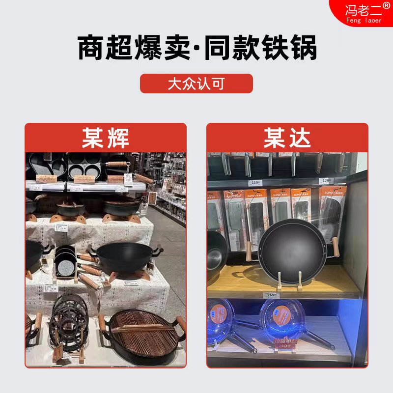 章丘铁锅官方旗舰店正品 铁锅炒锅手工锻打无涂层不粘炒菜家用轻音