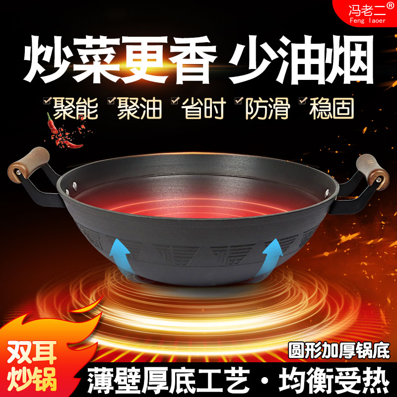 烹帝大肚铁锅炒锅家用炒菜不粘锅燃气灶电磁炉专用章丘锅具旗舰店