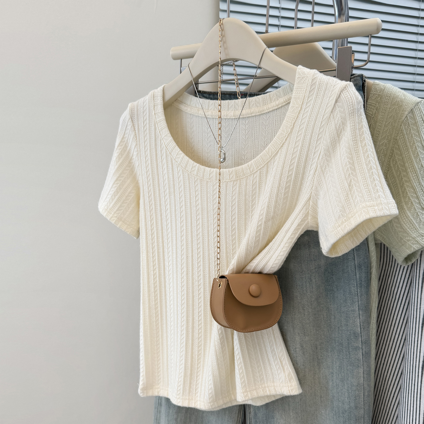 t恤女夏季 纯白色棉体恤打底衫 2025新款 修身 上衣短款 回力正肩短袖