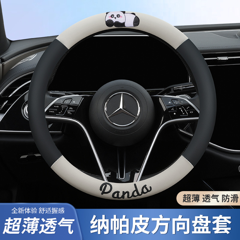 热销汽车方向盘套四季 通用防滑吸汗熊猫可爱把套耐磨透气$1