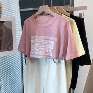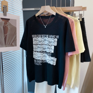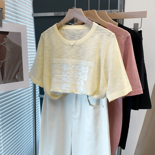 t恤衫 蕾丝圆领针织衫 宽松慵懒风外穿上衣薄短袖 新款 潮 女2025夏装