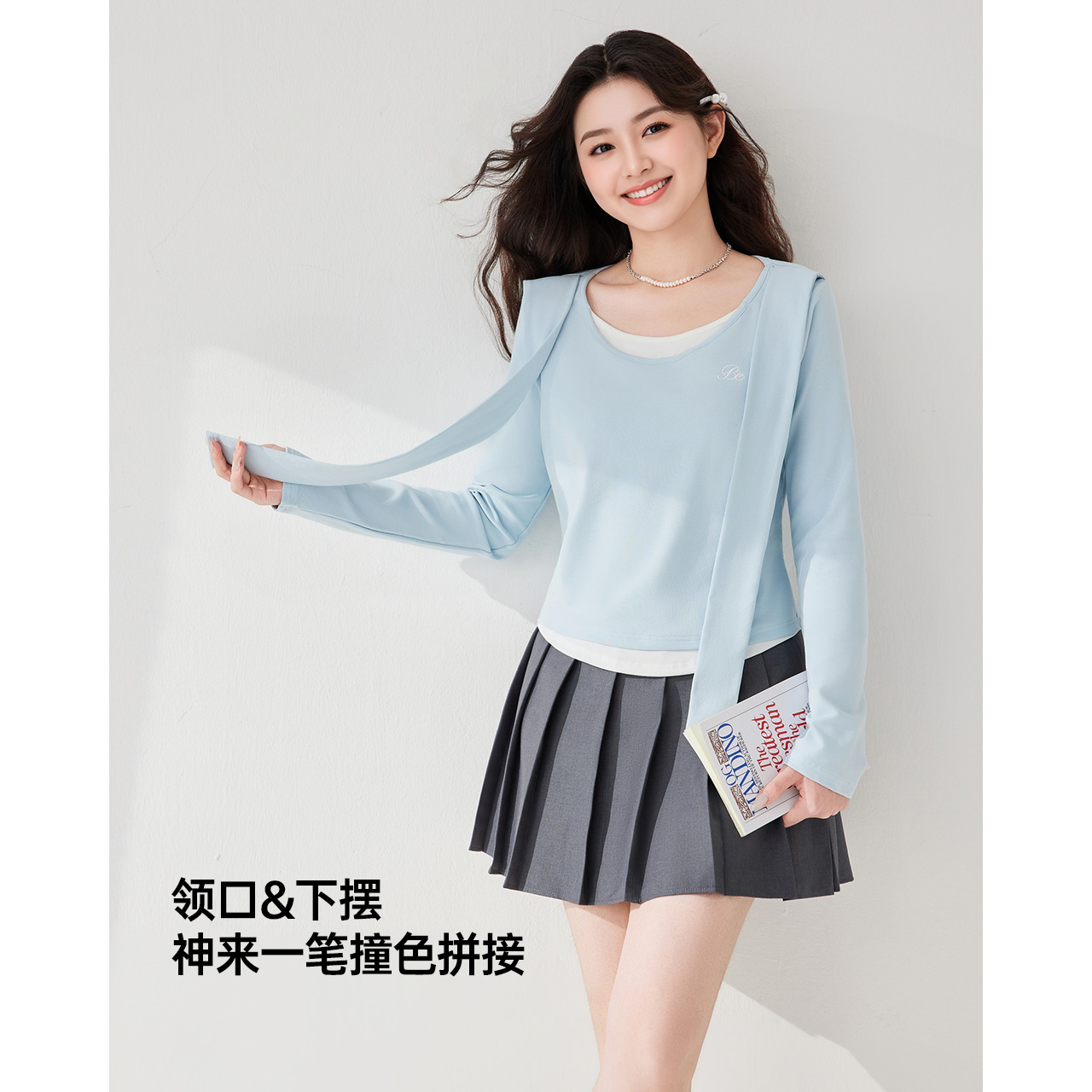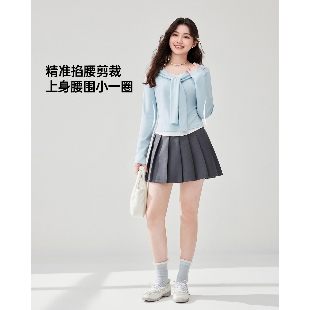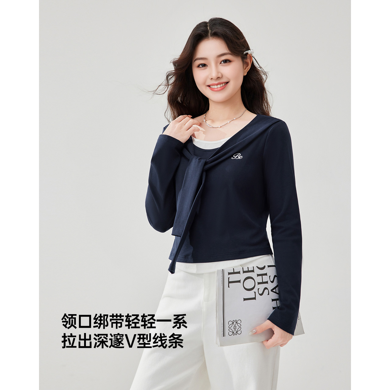 辣妹修身 打底衫 显瘦上衣 T恤女春秋内搭短款 设计感小众正肩V领长袖