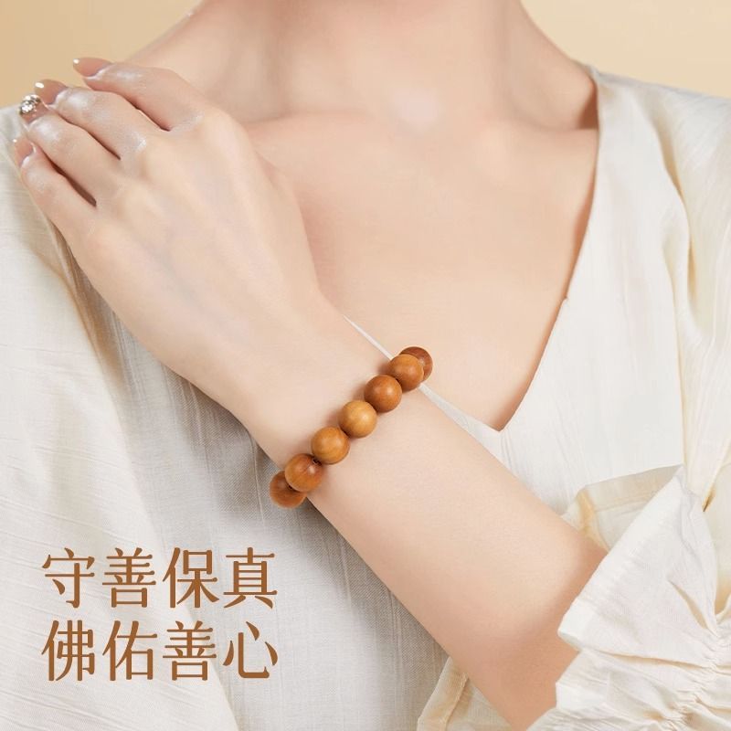 山东天然野生桃木手串男女款 念佛珠护身符特级木质手链盘檀木单圈
