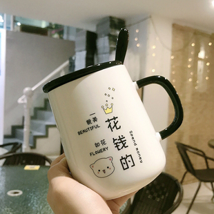 杯子ins带盖勺家用耐高温喝水女生高颜值办公室咖啡杯轻奢马克