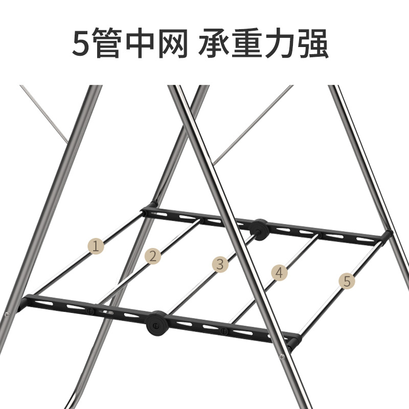 欧润哲不锈钢折叠双翼晒衣架家用阳台大容量落地晾衣架卧室挂衣架
