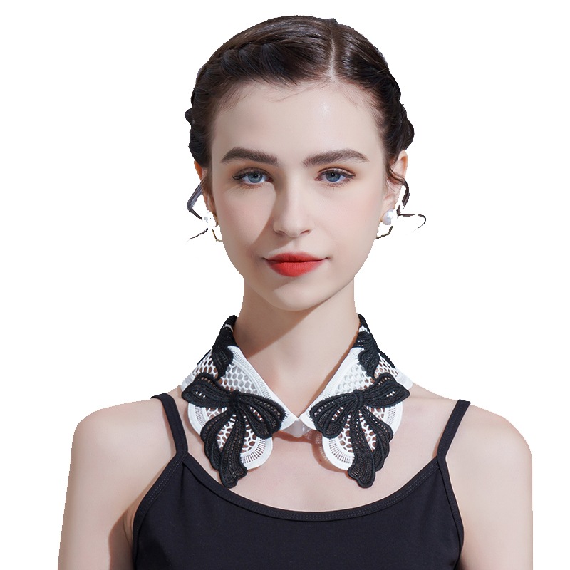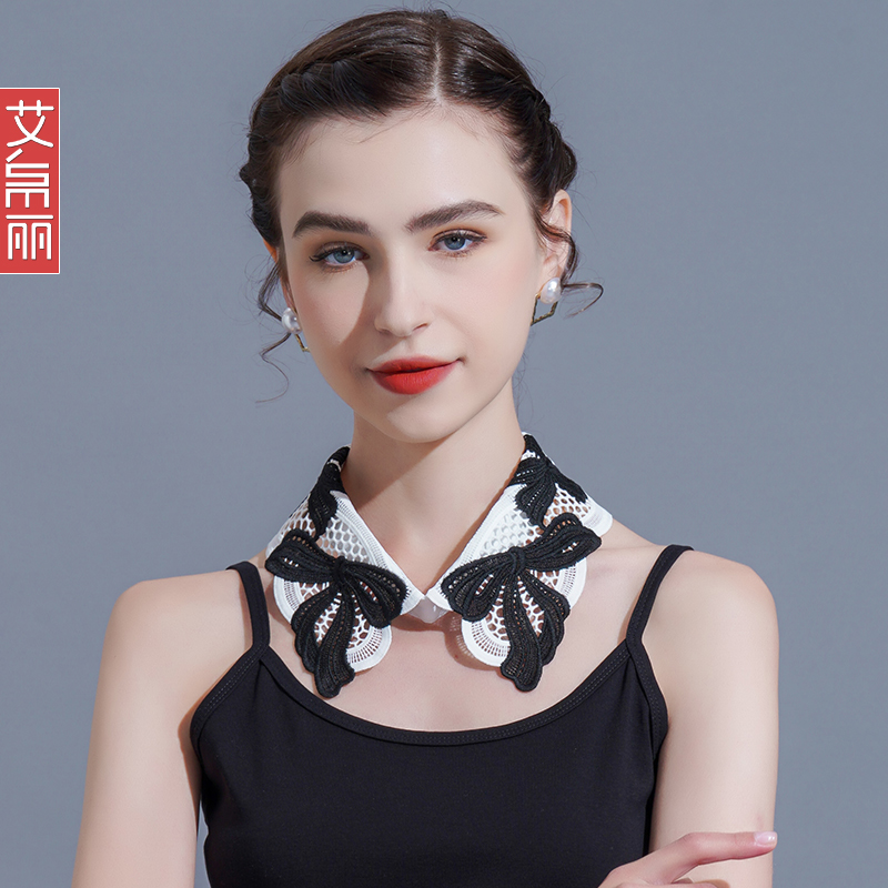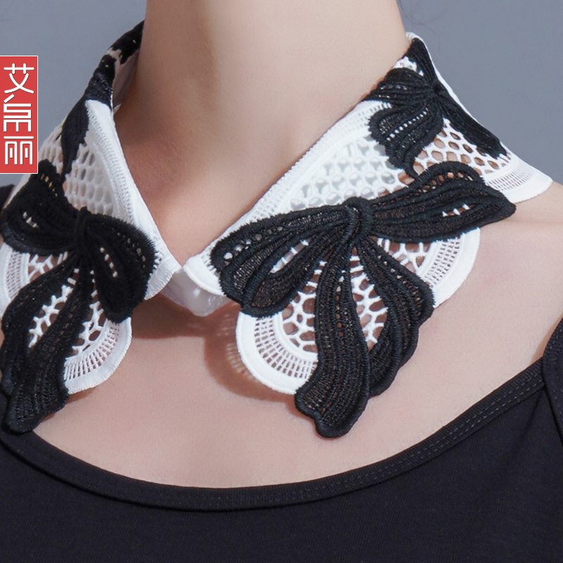 白色蕾丝花边衬衣假领子夏季 白色多功能防晒配裙子蝴蝶结假领子潮