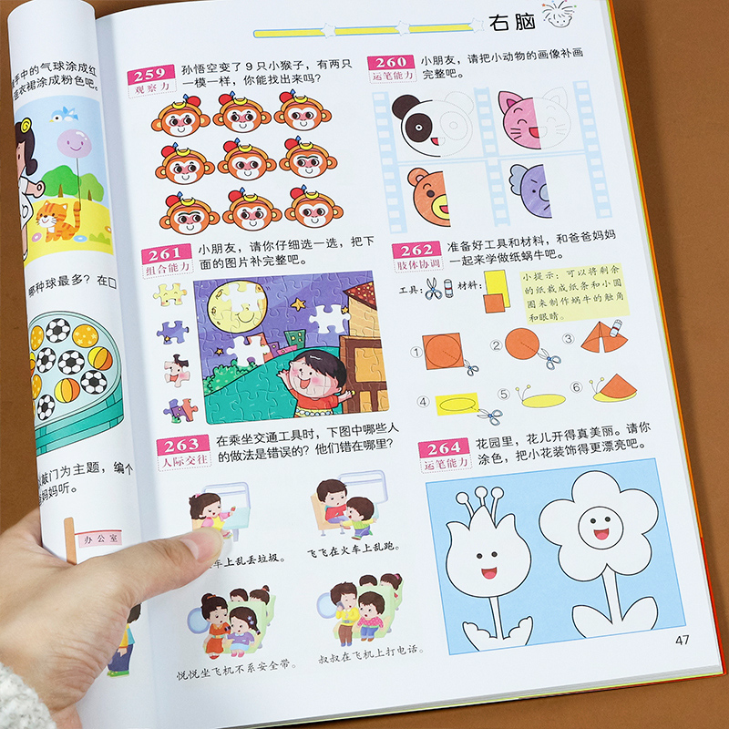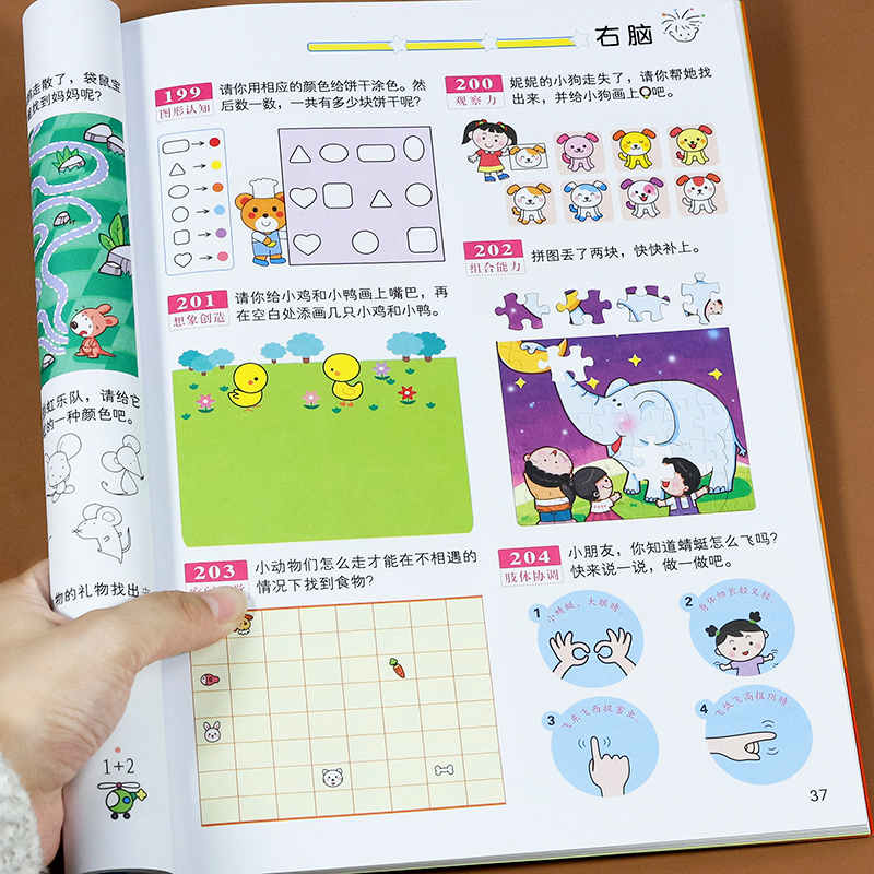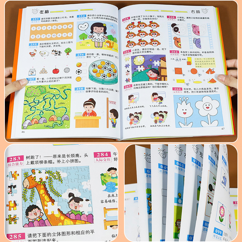 四五岁宝宝书籍启蒙早教书绘本中班大班 儿童左右脑智力潜能开发 幼儿园数学识字益智游戏连线书本 5岁全脑思维逻辑专注力训练