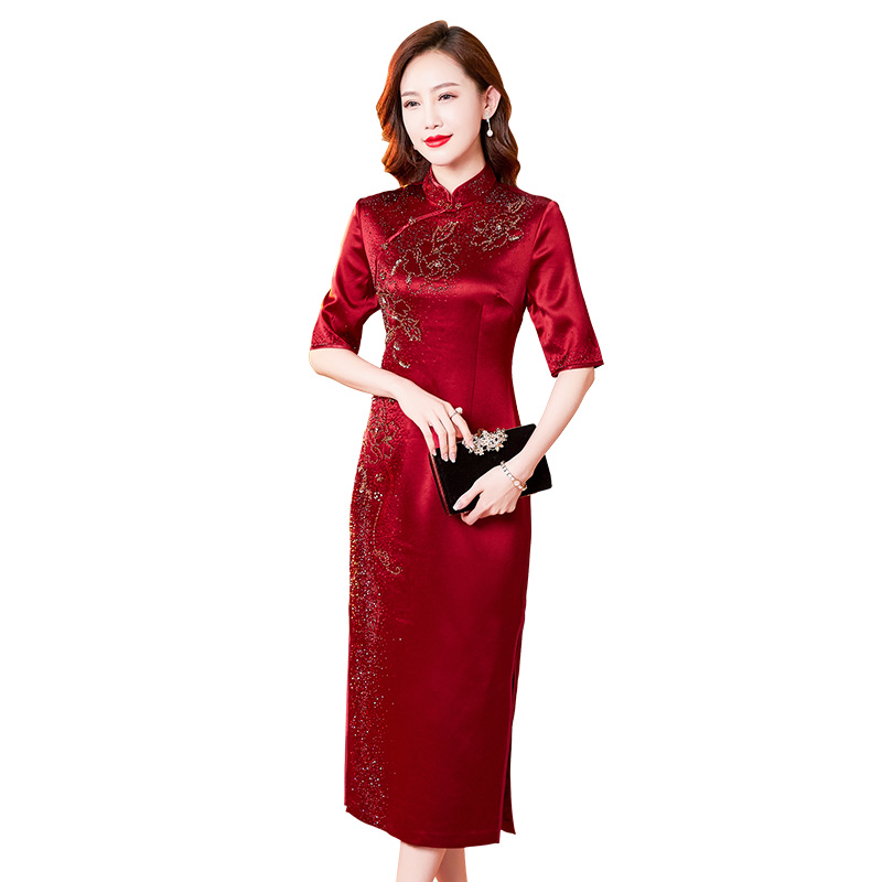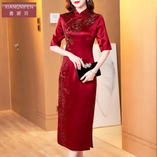 香妮芬2025秋季 醋酸材质妈妈婚宴礼服贵夫人连衣裙高端中长裙 新款