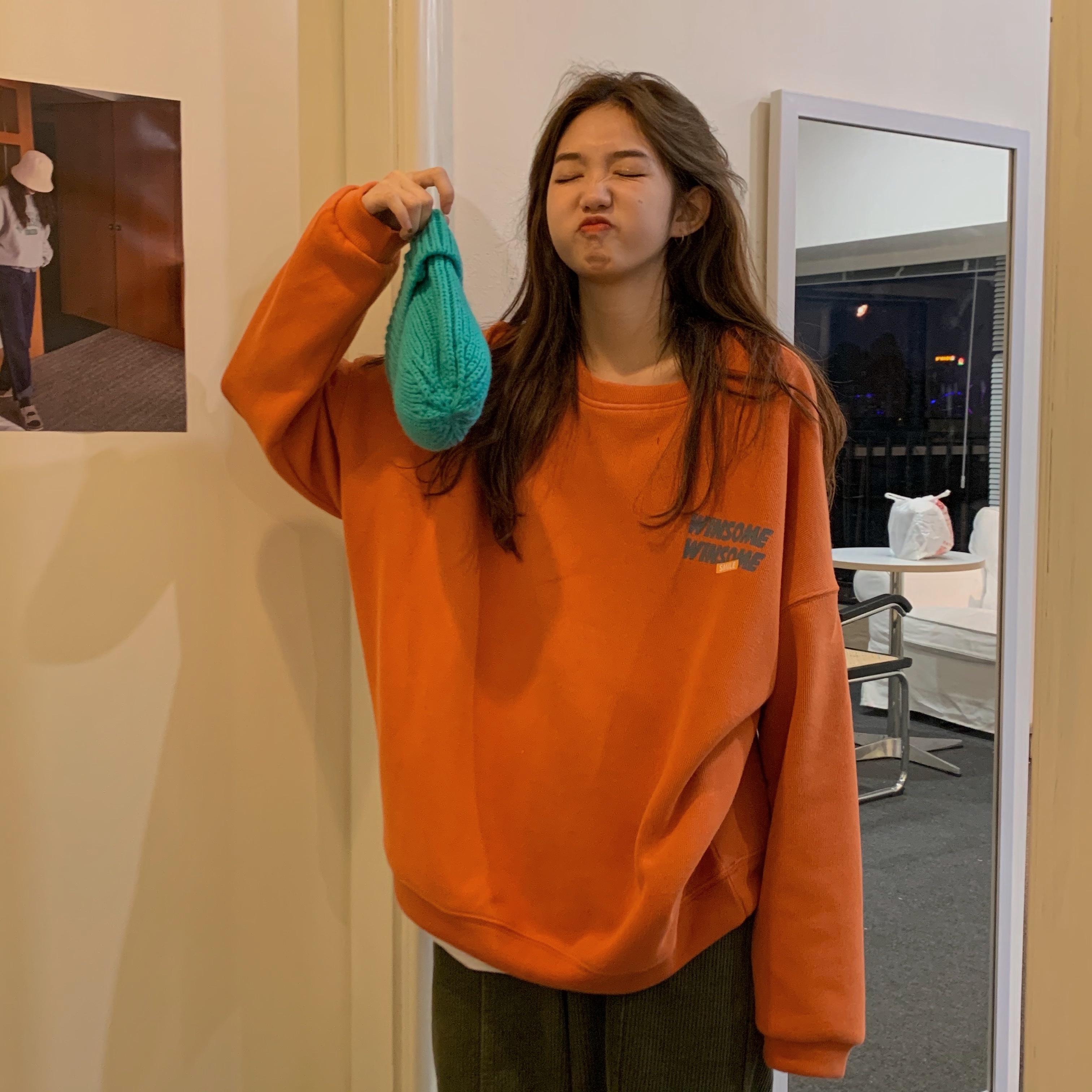 超火cec大码 卫衣女秋冬小众oversize宽松加绒圆领欧美冬上衣胖mm
