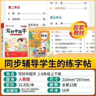 荣恒写好中国字小学语文同步练字帖一年级二三年级上册四五六年级上册人教版 小学生专用练字帖同步字帖写字课控笔临摹正楷书下册