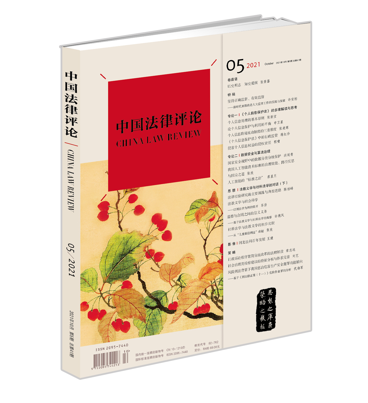 2021新中国法律评论2021年10月第5期总第41期 数据安全算法治理 法律出版 个人信息保护法多维思考 法教义学社科法学 社 中法图正版