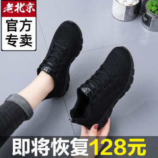老北京布鞋 加绒超轻软底不累脚旅游鞋 女 女全黑色运动鞋 防滑工作鞋