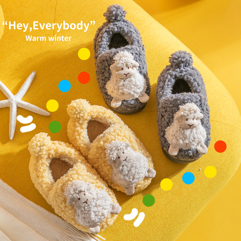 居家用防滑保暖毛毛包跟亲子可爱宝宝拖鞋 儿童棉拖鞋 男童女童冬季