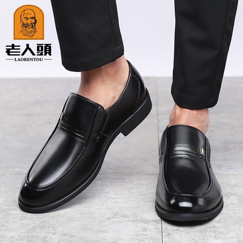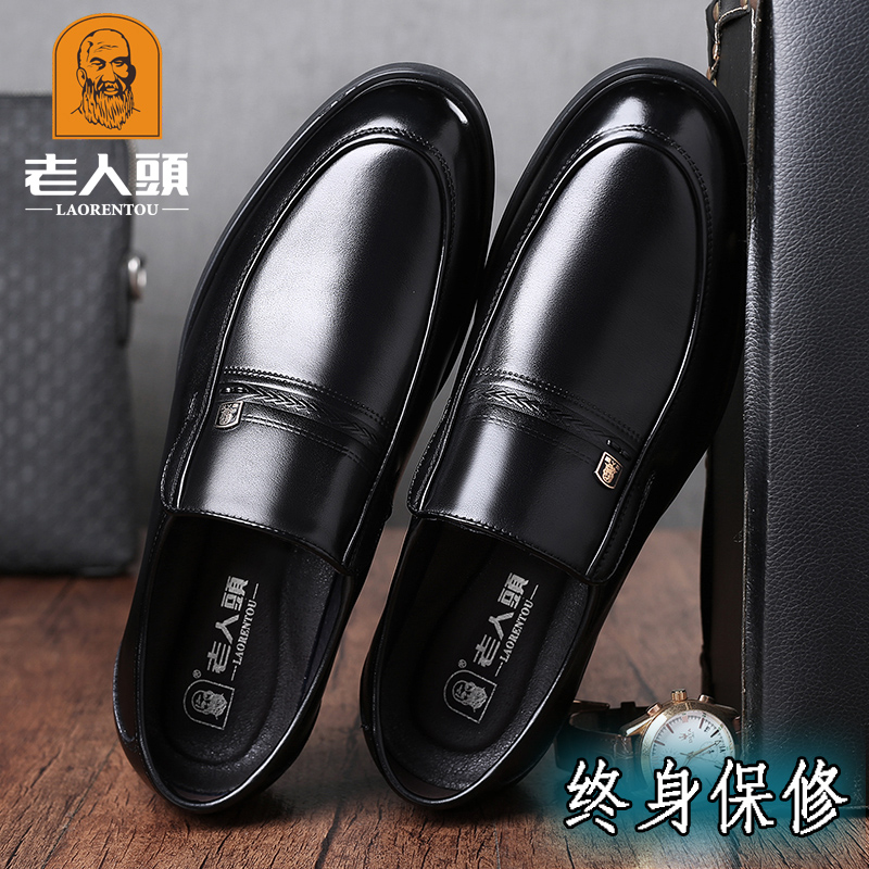 爸爸男鞋 老人头皮鞋 中老年大小码 透气休闲商务正装 男真皮2025秋季