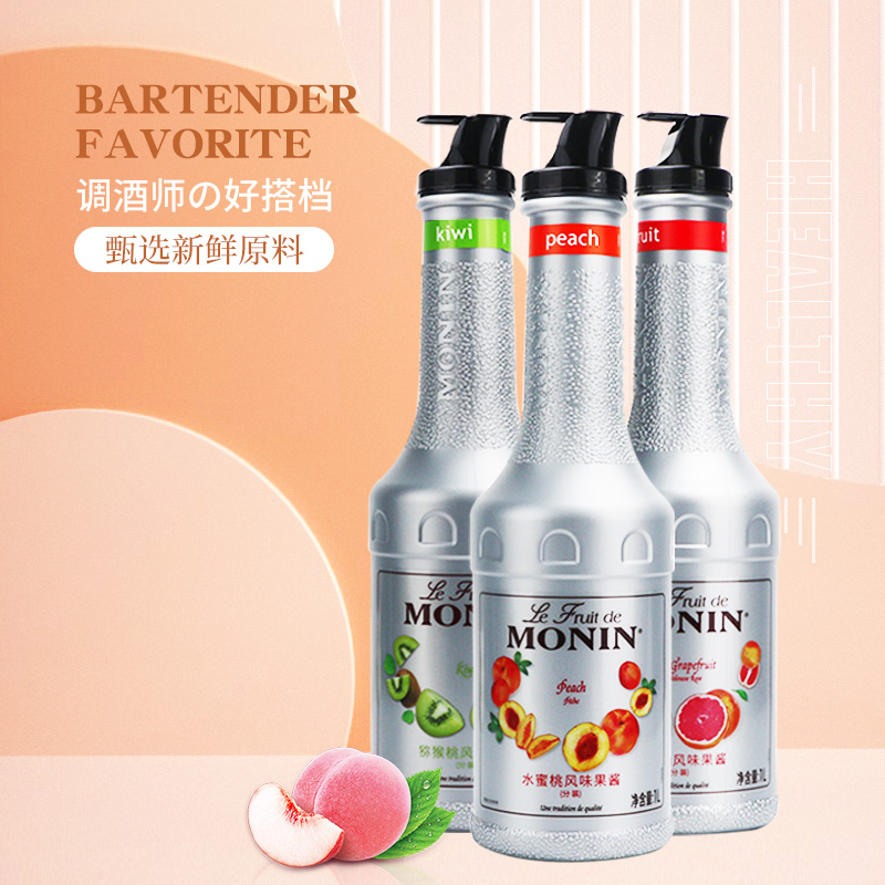 MONIN莫林果酱 草莓百香果水蜜桃菠萝芒果荔枝柿子风味果酱1L果泥